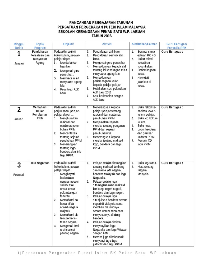 Perancangan Aktiviti Tahunan Pergerakan Puteri Islam Malaysia Pdf